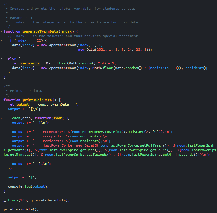 Typescript Playground does not show any errors in the code, and nothing immediately stands out as being incorrect. data and _ are not defined in the picture; however, the author of the code insists that those values are defined elsewhere. This does not tell you whether data is an array or object (both of which could use the same square bracket syntax), and _ might not have an each or times method1. ApartmentRoom is presumably a class of some kind, but you cannot see its code. Whatever assistance you can provide is constrained to the code that can fit within the window or screen of the individual taking the screenshot: you cannot scroll up or down to see the rest of the code. If you are looking at the image on a mobile device, you might not even be able to see the entire image on your screen.