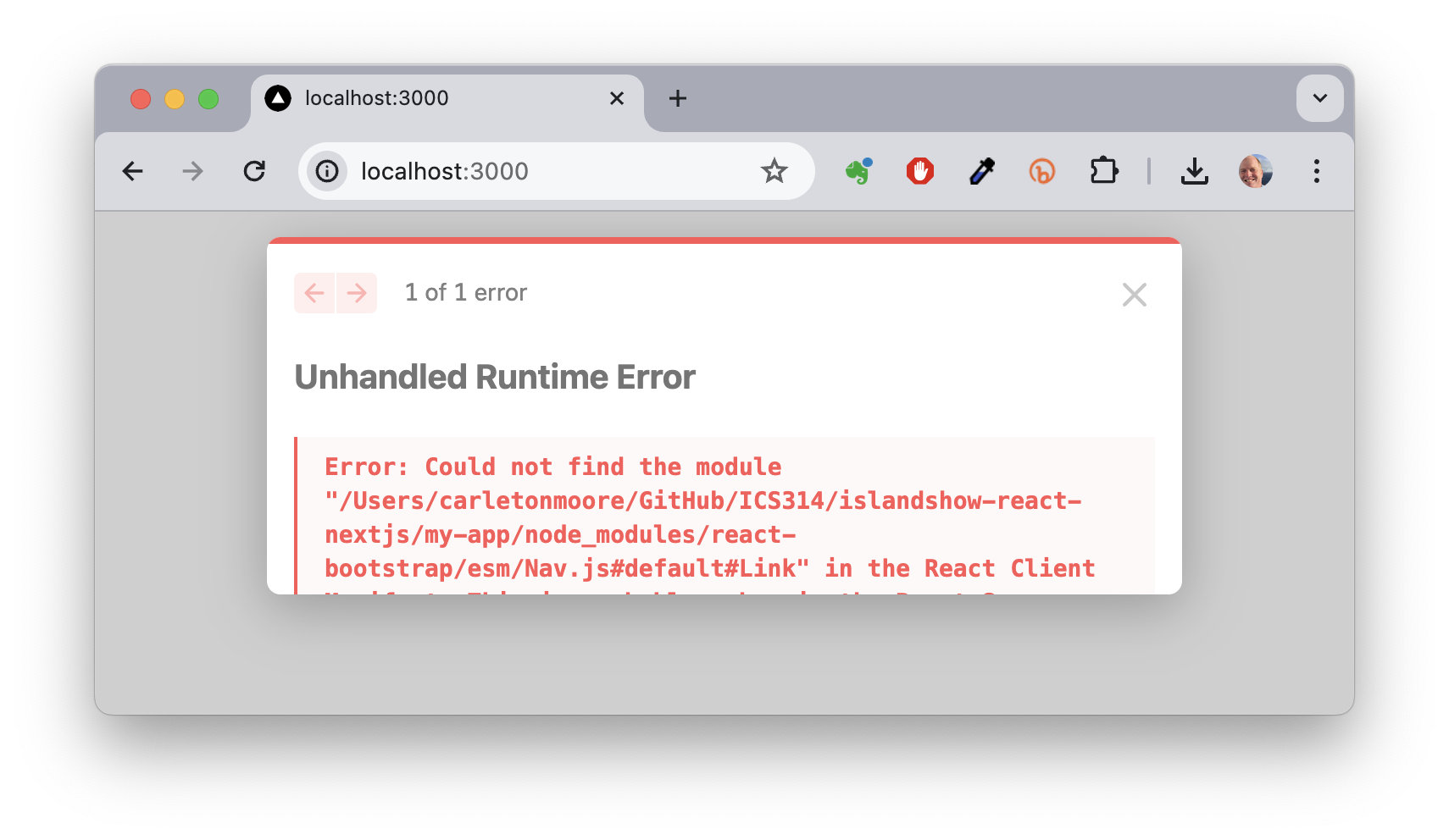 First, cd into your islandsnow-react directory and invoke npx create-next-app@latest my-app. Choose the following options: