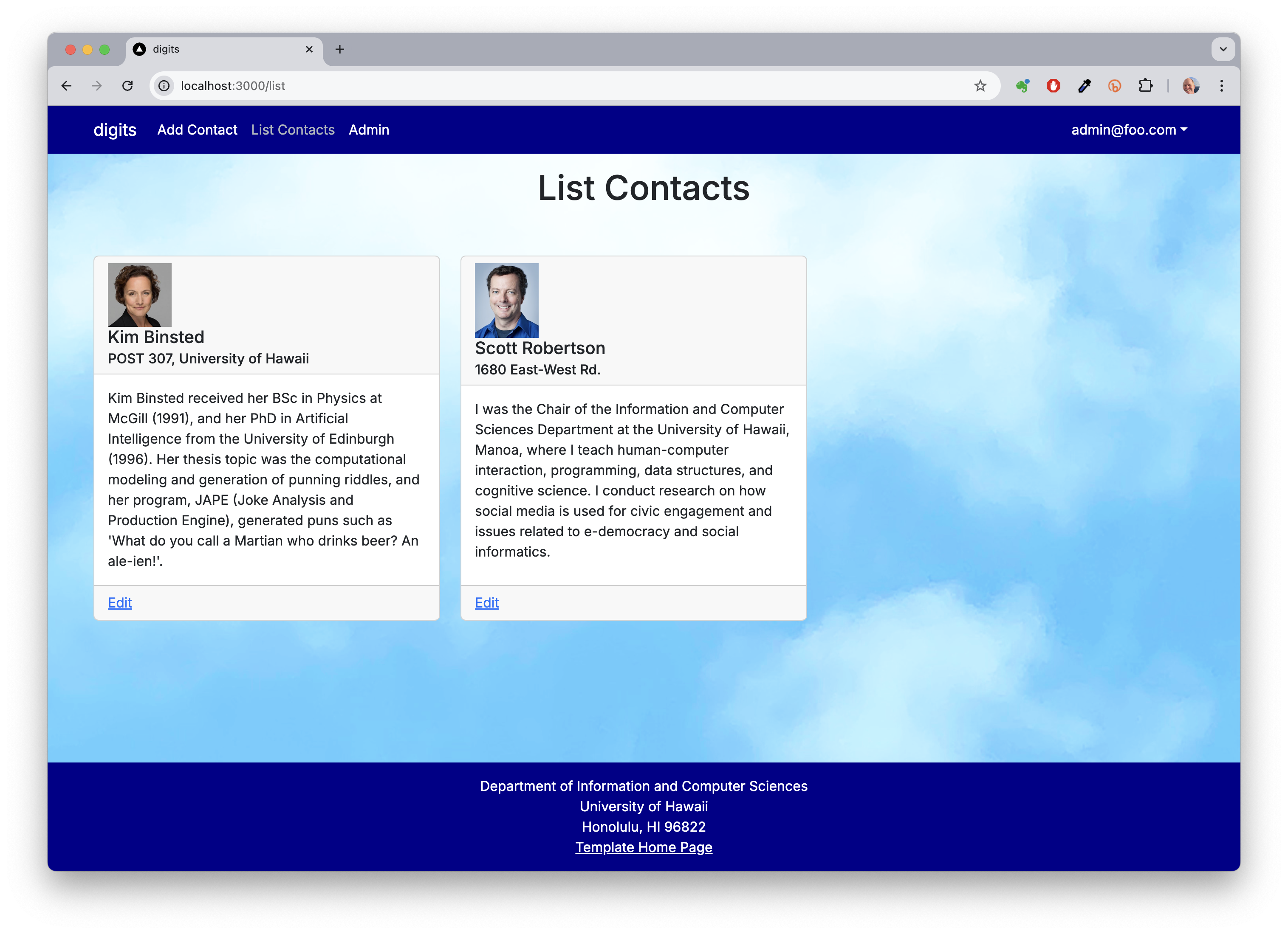 When you are done, the List Contacts page should include an Edit link at the bottom of each Contact:
