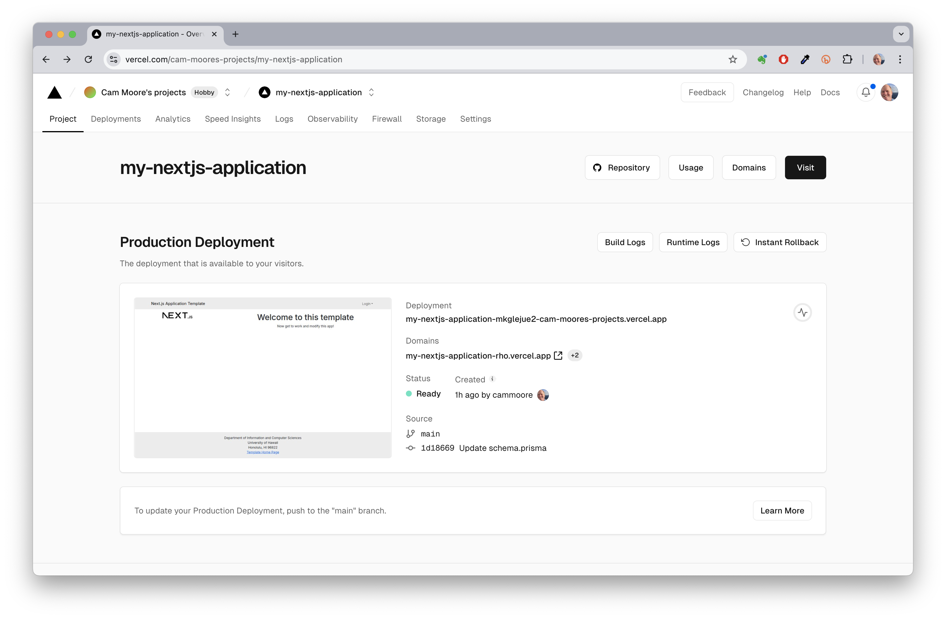 ? Found project “cam-moores-projects/my-nextjs-application”. Link to it? yes