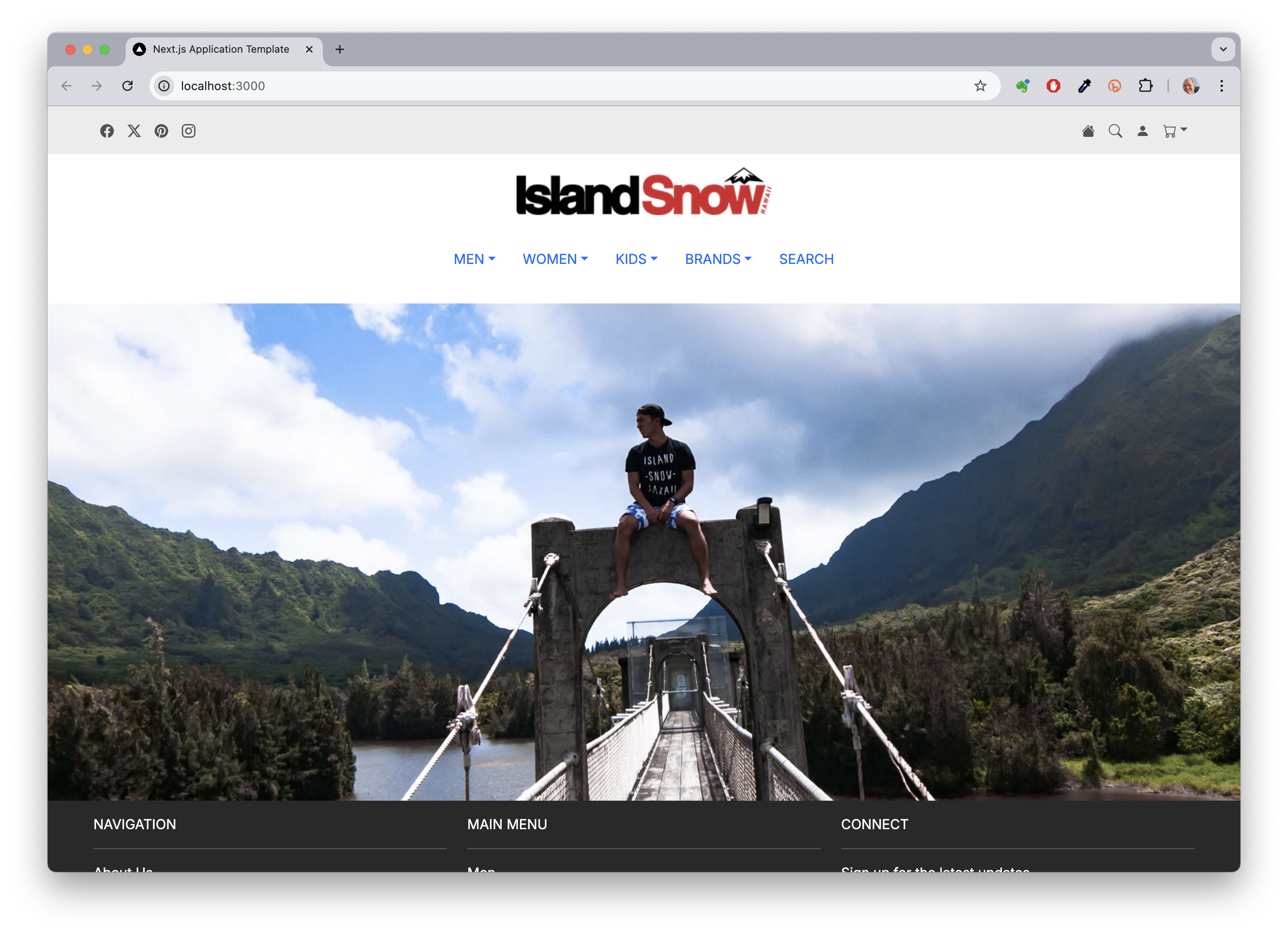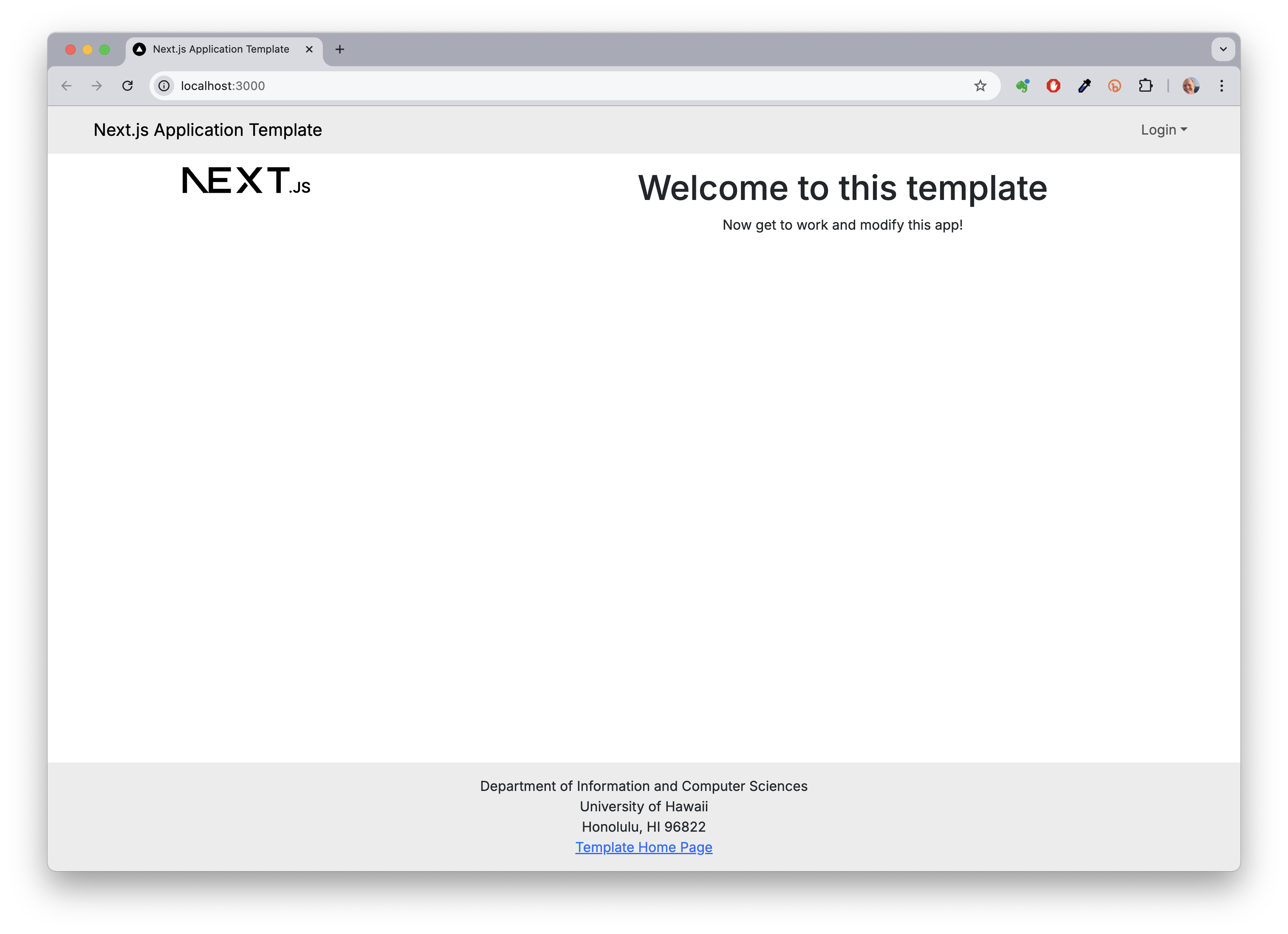Almost perfect, except that we are still displaying the NavBar and the Footer from nextjs-application-template!