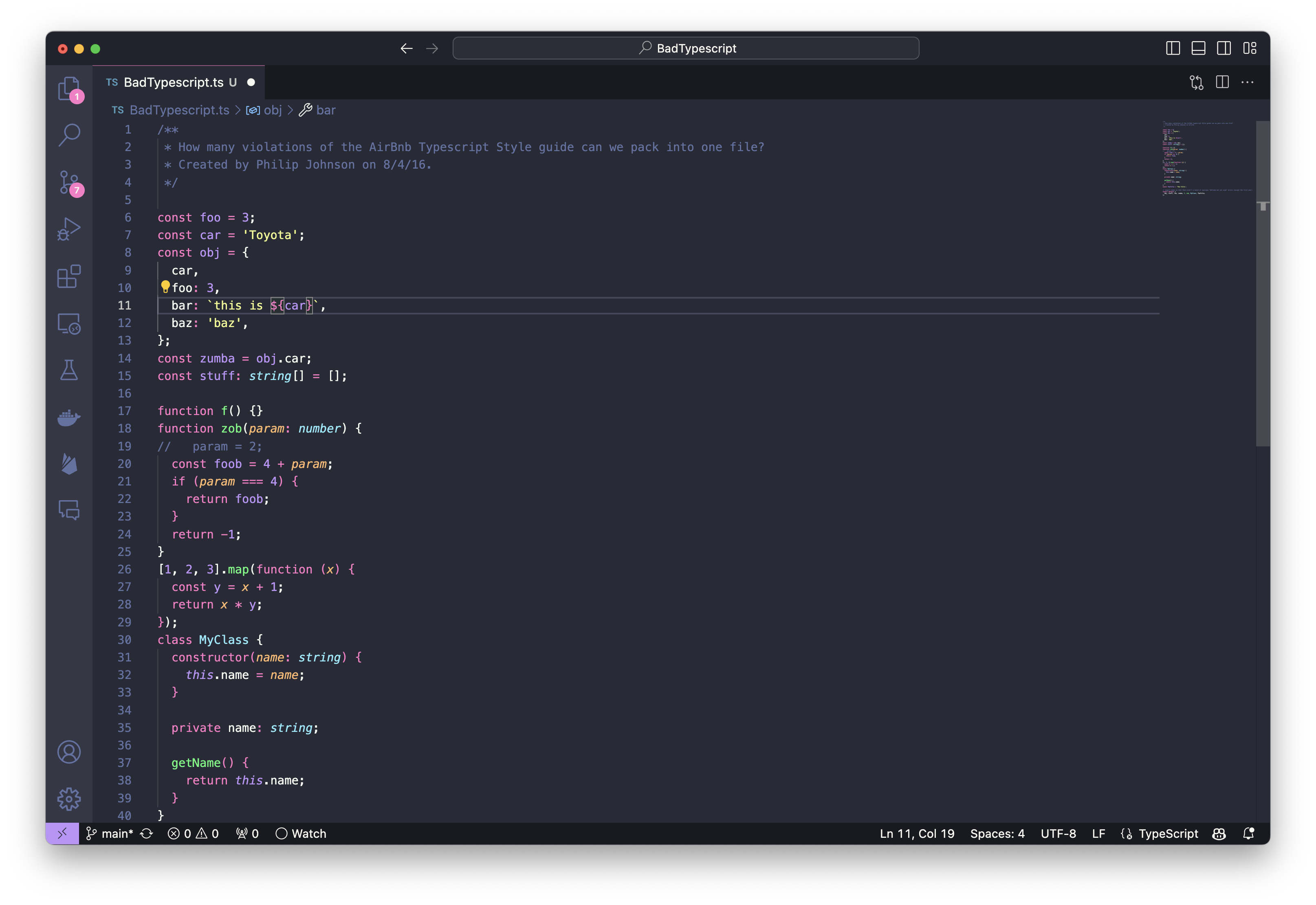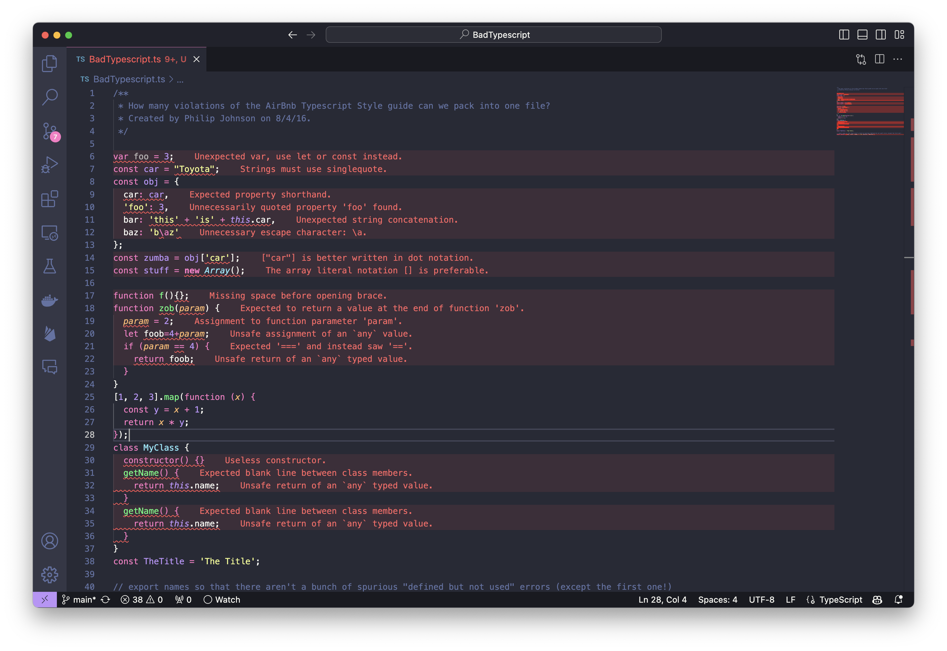 * How many violations of the AirBnb Typescript Style guide can we pack into one file?